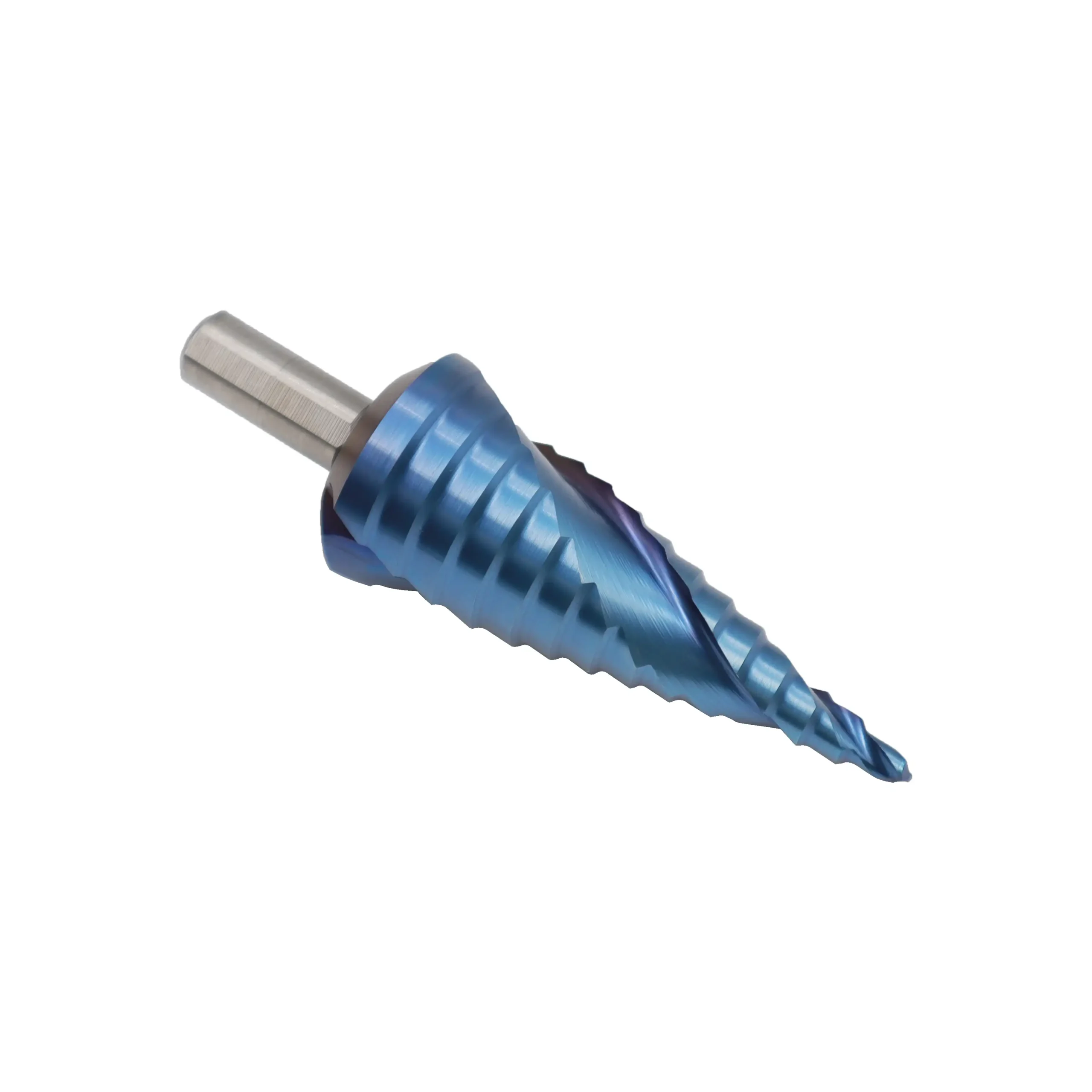 Crafted from high-speed steel, this spiral flute step drill bit features a durable Nano Blue coating that significantly reduces friction and extends tool life. The spiral flute ensures smooth chip removal and reduced vibration during operation. Designed with a round shank, it’s compatible with a wide range of drill chucks and provides exceptional performance in metal, stainless steel, and plastic applications.
